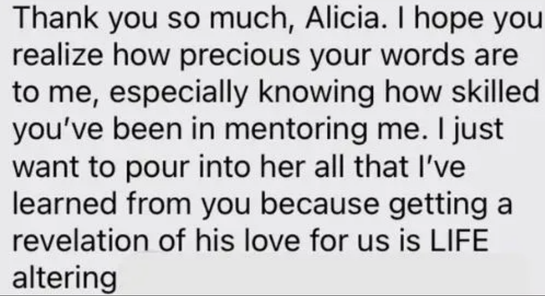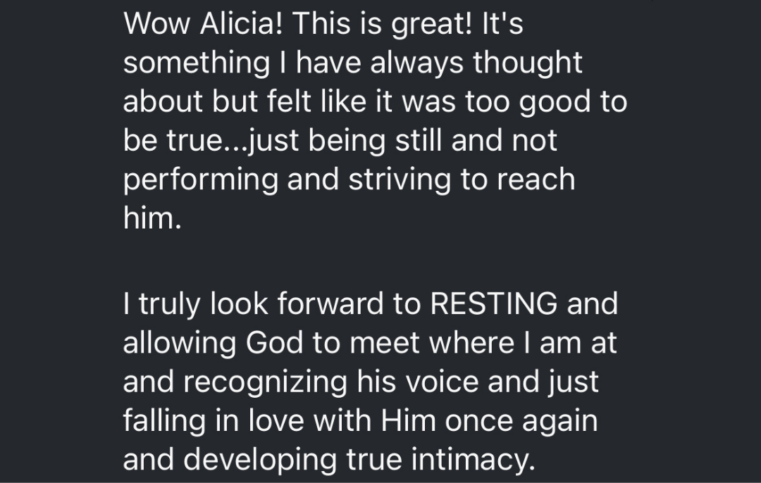 After nearly a decade of striving for success and fulfillment through achievement, Jesus revealed Himself to Alicia as her Bridegroom in 2020 and led her out of performance into bridal love.