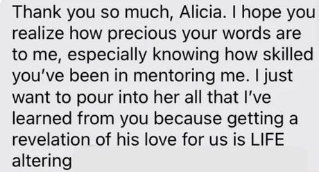 Today, Alicia guides women back to First Love through The Bride’s Journey™, a private transformation pathway that focuses on knowing Jesus as Bridegroom and living as His Bride daily. Her work confronts the common trap that success and service satisfy; but in reality, they only make the disconnection worse and more apparent.